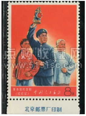 据了解,2019年7月12日拍出一枚新全品带厂铭文5“革命文艺—红灯记”邮票,成交价高达34410元;而同一天拍出的一枚新上品(折印有黄)文5“革命文艺—红灯记”邮票,成交价仅为306元。
