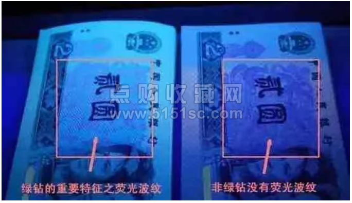 90年代,荧光工艺已较80年代有了长足的进步,因此802的荧光工艺略逊于902,体现在绿钻和绿幽灵上,就是使用荧光油墨(同色异谱油墨)的面积以及荧光的强度和美观度。