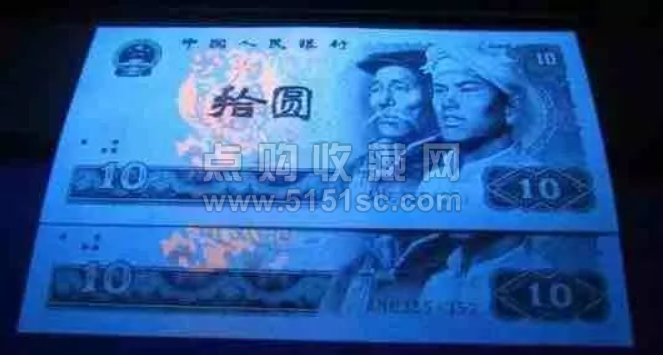 钱币收藏界有一个不成文的俗语:三版看水印,四版看荧光。确实,四版币开创我国荧光币的先河,品种也很多。荧光币最早出来的概念就是为了防伪,但在印刷的过程中,经常在做调整,这样就产生同一品种经常有不同的荧光出现。
