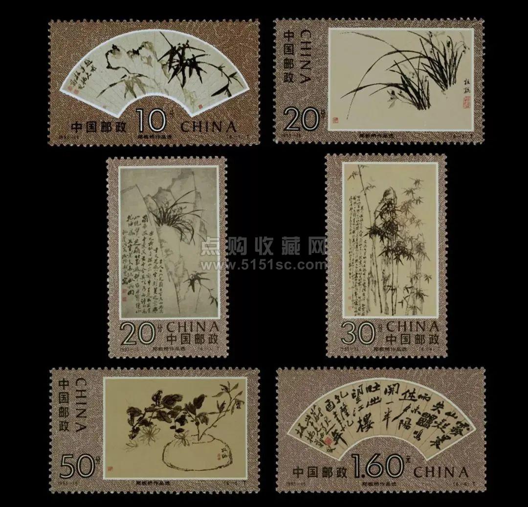1993年11月22日,是郑板桥诞生300周年纪念日,为表达对郑板桥的怀念和敬仰之情,中国邮政发行了《郑板桥作品选》特种邮票,全套6枚。邮票图案分别为:竹石扇面、兰花册页、兰竹石大中堂、竹石图轴、瓶菊册页、书法扇面。