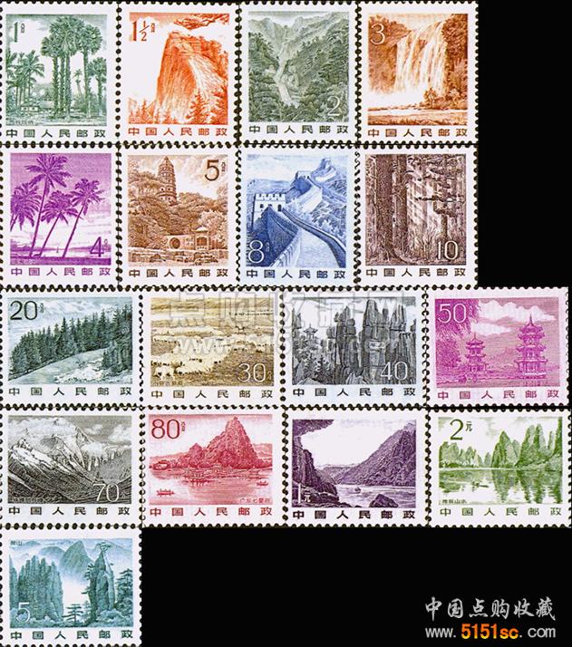 普21祖国风光普通邮票(雕刻版),选取我国著名山水风光景点作为主图,集中当时邮票和钱帀的顶级雕刻大师完成的一套巅峰之作,多次印刷,造成个别版面,如1分、2分、8分等均有不同程度的破版变异。