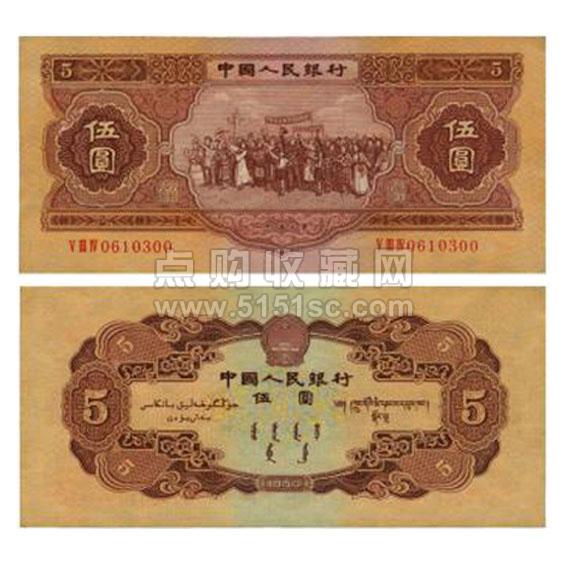 红五元为二版币中的伍元纸币,正面图案都是各族人民大团结,预示着1953年建国初期中国人民团结友爱,国家欣欣向荣的美好愿望,制作工艺也非常的精致细腻。