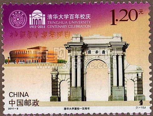2011年发行《清华大学建校一百周年》纪念邮票,邮票主图为清华大学二校门及综合体育馆以及清华百年校庆标志,整体设计生动体现了百年清华的人文理念和崭新风貌。