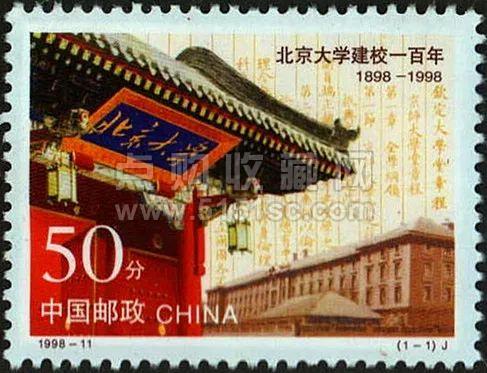 1998年发行《北京大学建校一百年》纪念邮票,邮票以北大百年历程中三组具有历史意义的景物—京师大学堂章程、沙滩红楼、燕园西校门为图案,生动体现了北京大学的光荣传统。