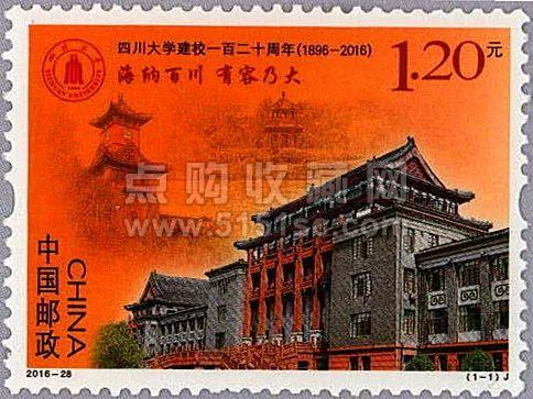 2016年发行《四川大学建校一百二十周年》纪念邮票,邮票画面以四川大学校徽、校训及建筑景观为元素,以钢笔淡彩的形式将其有机结合,表现了四川大学独特的风貌和深厚的文化底蕴。