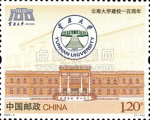2023年发行《云南大学建校一百周年》纪念邮票,邮票以学校代表性建筑会泽院为主体,与校徽相呼应,充分展现云南大学作为百年名校的风采。九十五级阶梯用横线概括贯穿整个背景,表现了云大人一步一步不断攀登,面向未来,不忘初心。