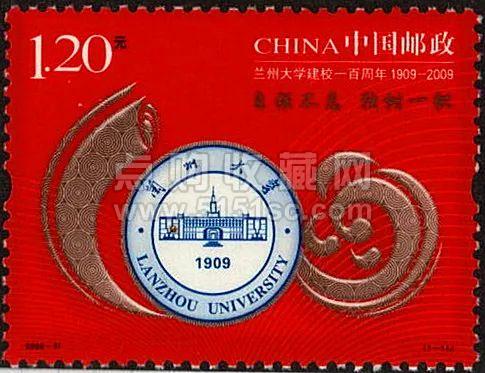 2009年发行《兰州大学建校一百周年》纪念邮票,邮票以校徽为核心图案,用象征黄河的水花托起校徽,前面加上火炬,形象地成为数字“100”,凸显兰大建校百年的主题。
