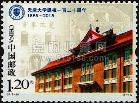 2015年发行《天津大学建校一百二十周年》纪念邮票,邮票采用了历史与现代相结合的手法设计,将该校校训“实事求是”、第九教学楼、北洋大学堂旧址、中国近代第一张大学文凭等元素一一展现在方寸之上,充分体现了天津大学120年来辉煌的发展历程和深厚的人文底蕴。