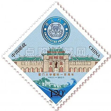 2021年发行《厦门大学建校一百周年》纪念邮票,邮票以厦门大学的标志性建筑之一 群贤楼群为主体,同时表现校徽、建南大会堂及海浪等元素,彰显出厦门大学深厚的历史底蕴。