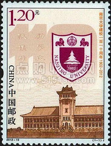 2012年发行《南京大学建校一百一十周年》纪念邮票,图案以南京大学北大楼和南大的校徽为主图,背景画面隐约中可以看到“110”字样, “11”里面座右铭式地嵌入“诚朴雄伟、励学敦行”八字校训。