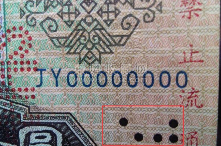 第一次印有盲文,估计很多人没有注意到四版人民币印有盲文。