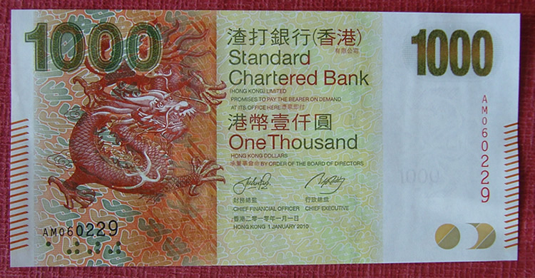 【藏品面值】渣打银行1000元钞、500元钞、100元钞、50元钞、20元钞、10元钞