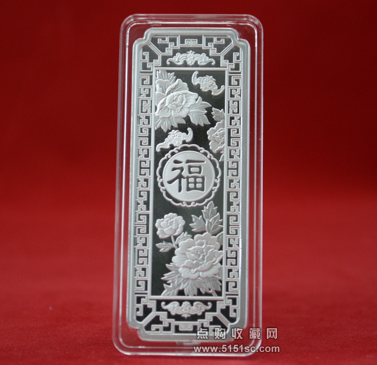 背面“福”结合蝙蝠、窗棂等吉祥元素,承托银条整体造型雍容典雅、富贵吉祥。美好画面于方寸间尽显奢华,寄托无限期许与祥瑞祝福。