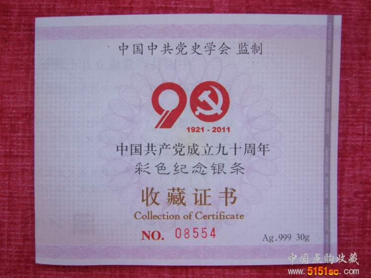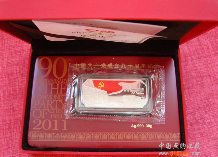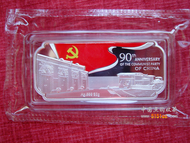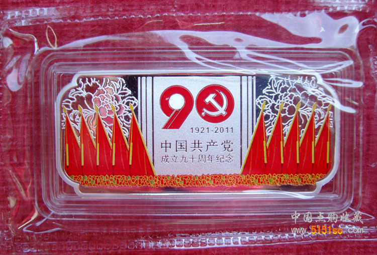 【藏品名称】中国共产党成立九十周年彩色纪念银条30g