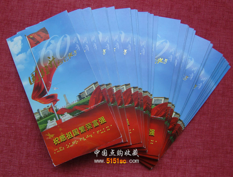 【藏品名称】建国60周年明信片/国旗升起的地方(广场竖错片)100张