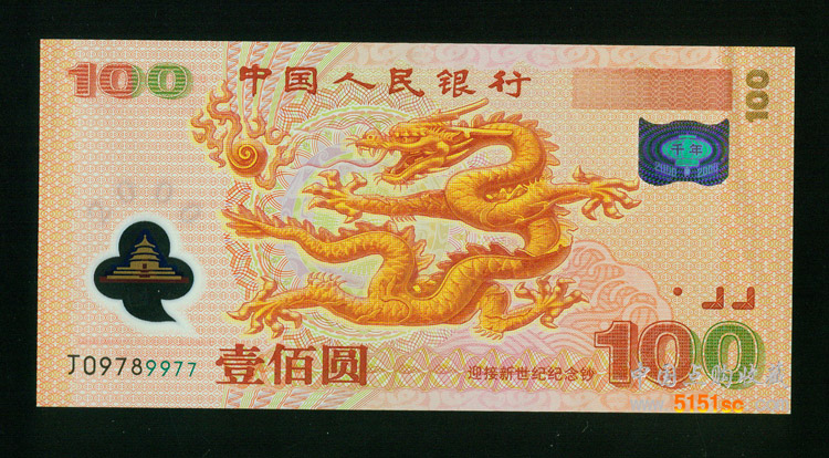 【藏品名称】2000年100元龙钞