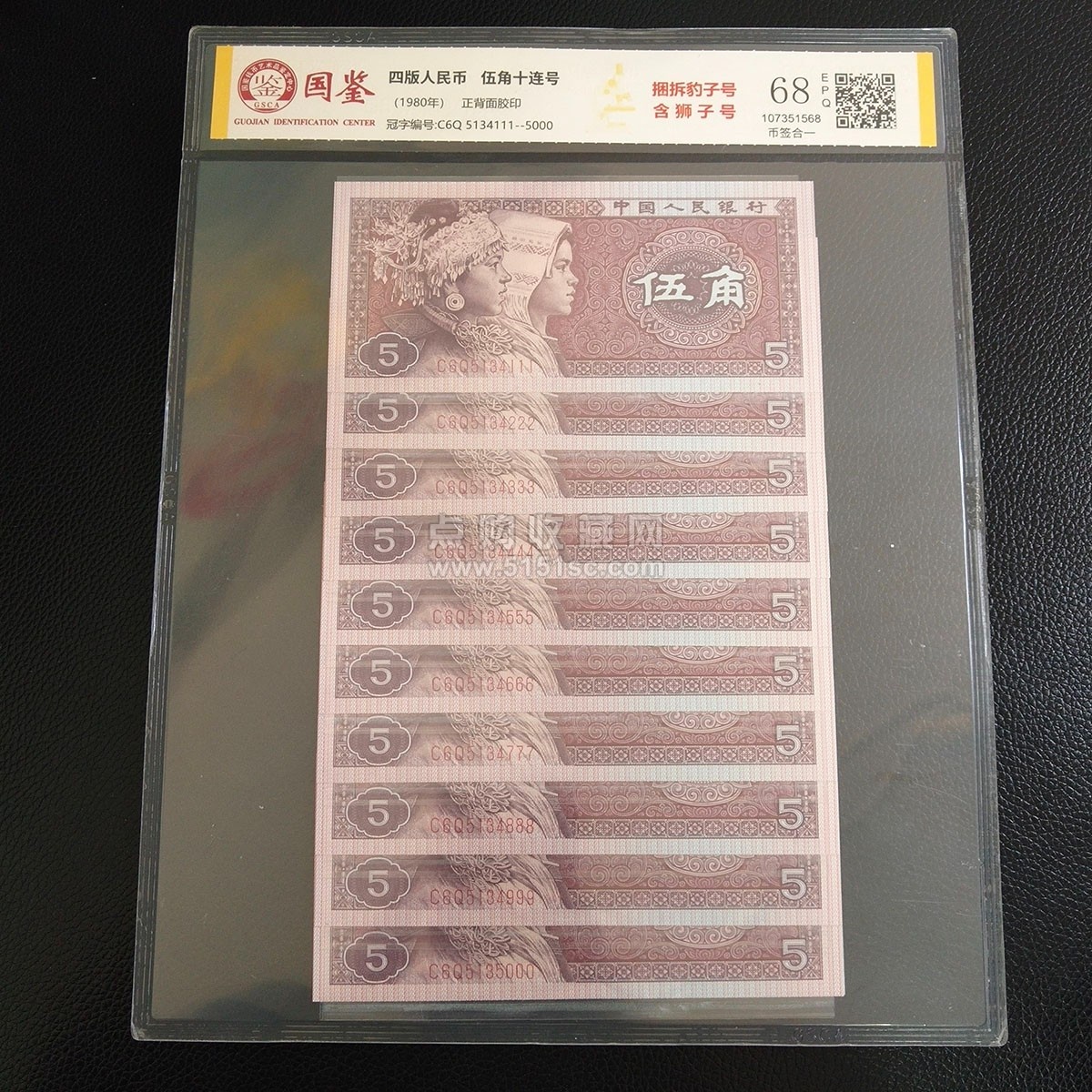 • 1980年5角十连号 捆拆豹子号 含狮子号(号码4111-5000)币签合一  【此商品已售】